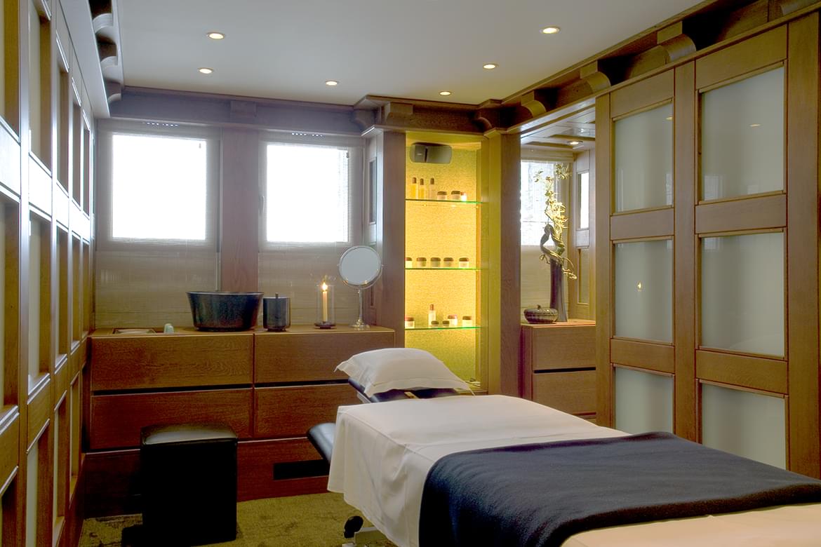 The restorative treatments at the Spa are drawn from around the world and provide nourishing heat and moisture to soothe body and mind after a day on the slopes. Massages, facials and specialised foot and hand therapies are joined by private yoga sessions in the four treatment rooms and gym. Further relaxation can be found at the hammam heated pool and Jacuzzi
