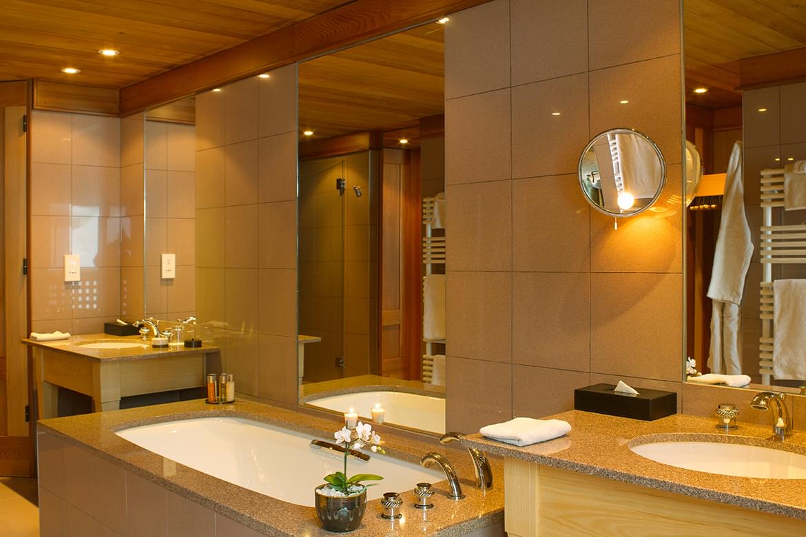 Combining comfort and style, Aman Le Mélézin’s Chambres and Suites frame picture-postcard views of snowy mountains rearing against the Alpine sky. Cedar-panelled ceilings and walls create a cosy chalet feel while large picture windows draw the eye out to the magnificent scenery – even from the bathtub in many Suites. Most Suites feature balconies and separate living rooms.