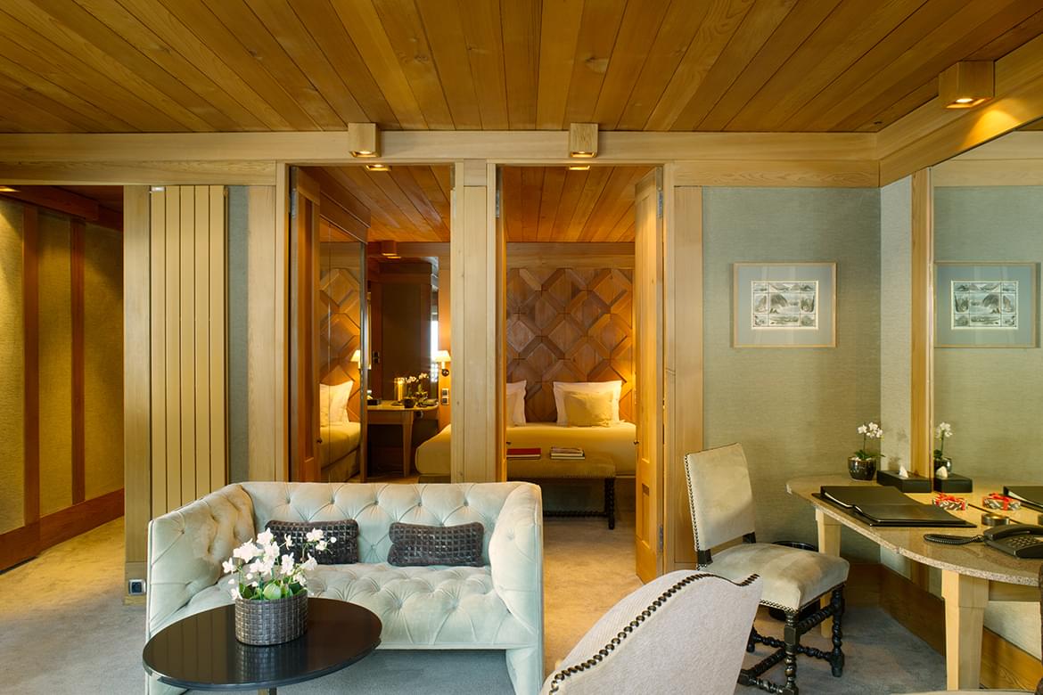 Topped by a slate roof and amid a wonderland of groomed pistes, Aman Le Mélézin’s 31 Chambres and Suites are decorated in an Alps-inspired palette.