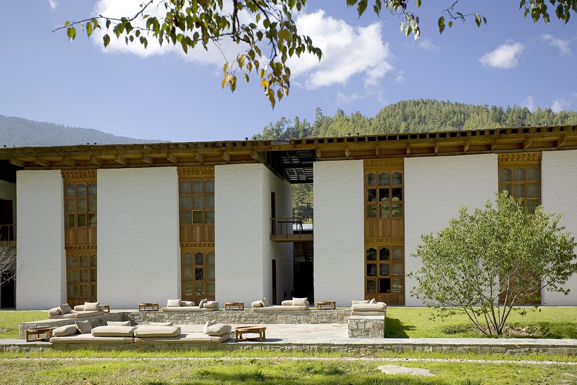 The Kingdom of Bhutan is a place of soaring 7,000-metre Himalayan peaks, glacial river valleys and evergreen forests. Amankora resort comprises five lodges dotted across this ancient land. Surrounded by forests and orchards, the five Lodges comprise 72 Suites fusing rustic elements with contemporary design.