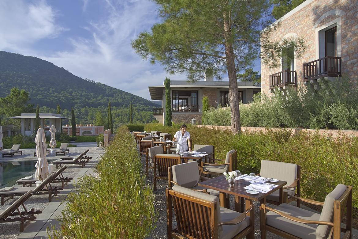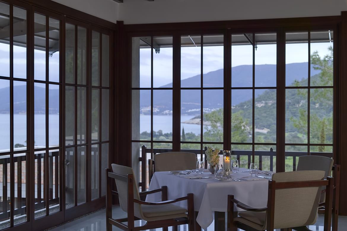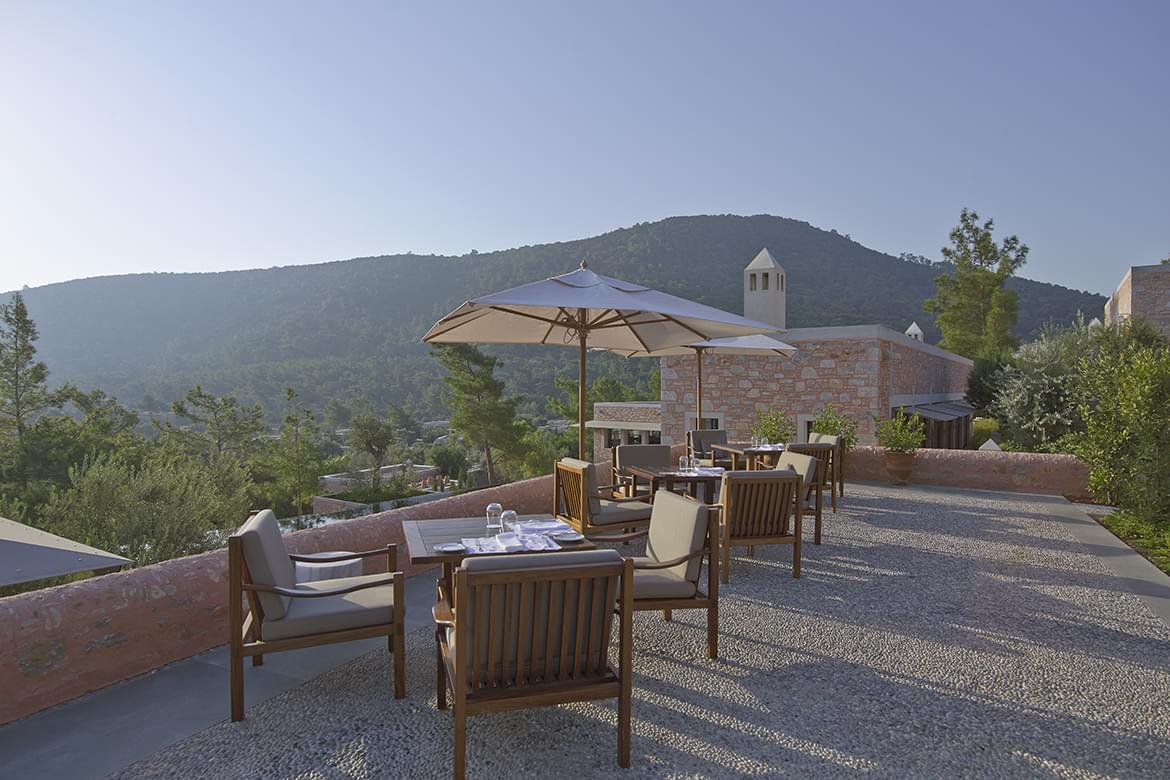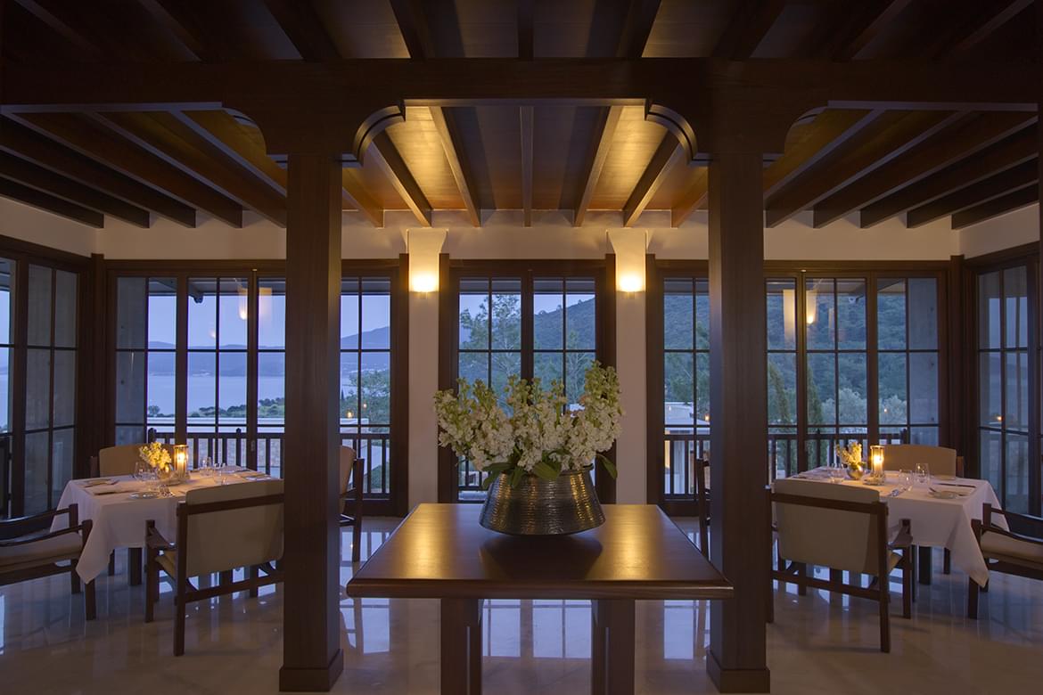 Turkey has a variety of microclimates resulting in an amazing array of produce. This produce, combined with the freshest of local seafood, allows the kitchen at Amanruya to deliver a seasonal menu featuring Turkish and Mediterranean cuisines. Amanruya’s home-baked bread and informal Meze platters make for superb in-suite dining or picnic options. Amanruya offers a number of dining pavilions and lounges, as well as the Beach Club where light meals and refreshments can be enjoyed throughout the day. Pool Dining Pavilion – Overlooking the main swimming pool, the Pool Dining Pavilion is an elegant and intimate dining space with dark wooden ceilings and pale marble floors. Dining Pavilions – There are additional dining pavilions located higher on the hillside and offering panoramic views. They are ideal for special occasions and events. Wine Cellar – With its lofty vaulted ceiling and serene views, the Wine Cellar is an atmospheric setting for special events, whether dinners or cocktail parties. Lounge – The spacious Lounge with its divan-style seating, dark beamed ceiling and wraparound windows is a relaxing venue in which to enjoy afternoon tea, an evening cocktail or simply to pass some time with a book. Wine Lounge – The Wine Lounge enjoys a lofty setting with spectacular views of the bay and surrounding hills. Pool Pavilion – The casual, open-air Pool Pavilion is an informal venue for relaxing or enjoying a refreshing drink