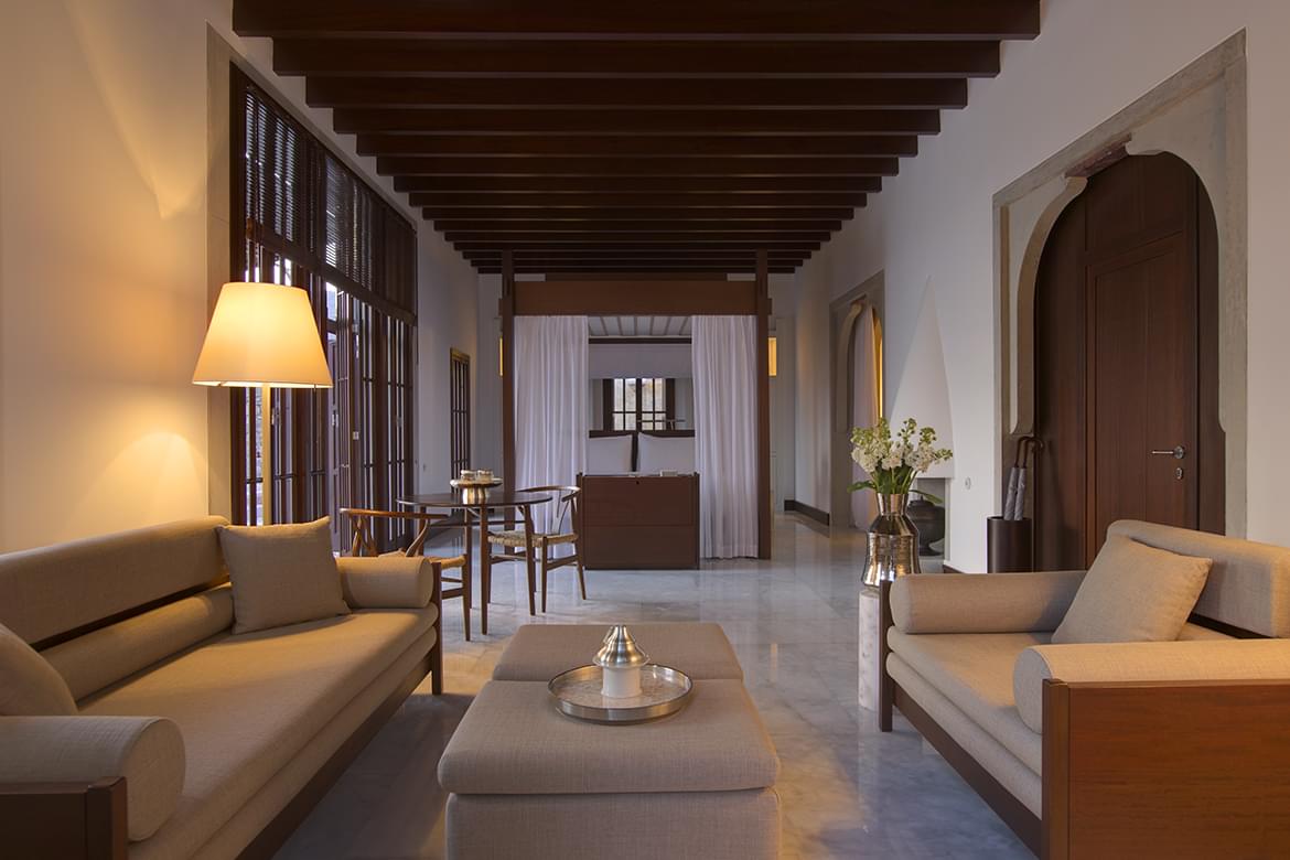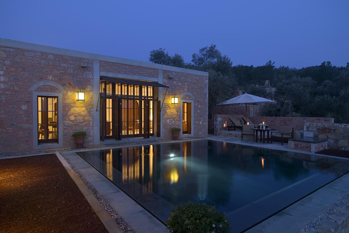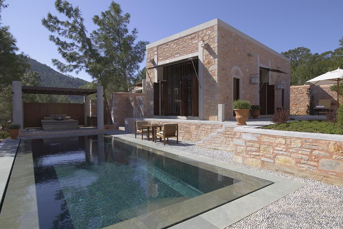 Amanruya offers 36 spacious and elegant Pool Terrace Cottages, each with a private garden and pool. Designed to welcome and soothe, the cottages are gracious homes away from home and a cool air of sophisticated calm prevails. The 75-square metre cottages feature a four-poster bed, two couches, a dining table and two chairs, a rectangular writing desk, a traditional Turkish mangal charcoal fireplace, a separate vanity area and clothes closet and a large, naturally-lit open bathroom. This features a rain shower and a large bath tub from which one can enjoy private garden views. Traditional handmade rugs and throws from Istanbul provide warmth and an element of Turkish opulence. Fitted with underfloor heating for use in the cooler months, there is also a fireplace that accommodates a brazier. This can be lit with firewood for use in the living room or on the terrace. Each cottage enjoys its own spacious garden which leads to a private grey-green marble swimming pool. The layout of the gardens and pools vary. Some pools are square and others rectangular. There are 22 heated pools and 16 are kept at the ambient temperature. The gardens feature pergolas with large cushioned daybeds and two separate wooden chaise lounges with shade umbrellas. All Pool Terrace Cottages are equipped with LCD screen TVs, wireless internet, DVD players, mini bars, espresso machines, safety boxes, iPod players, air conditioning, hair dryers, electronic keys and king-size beds.