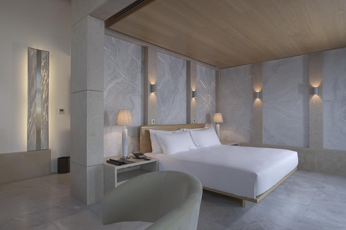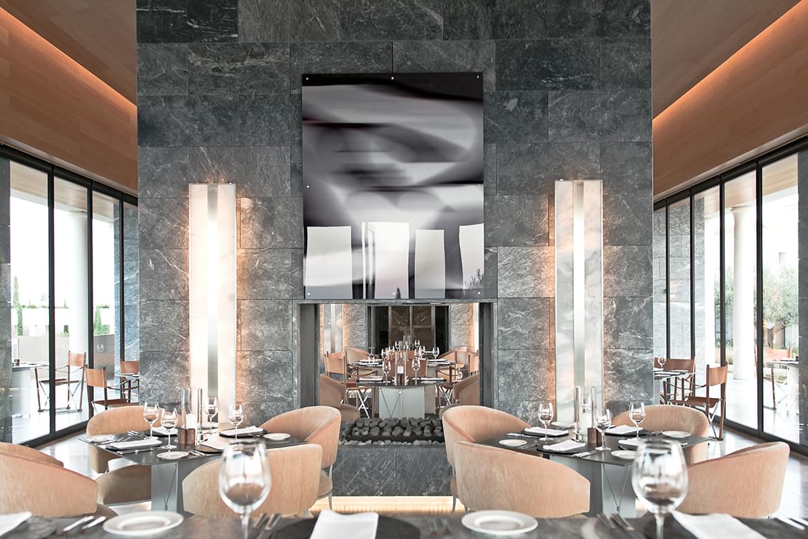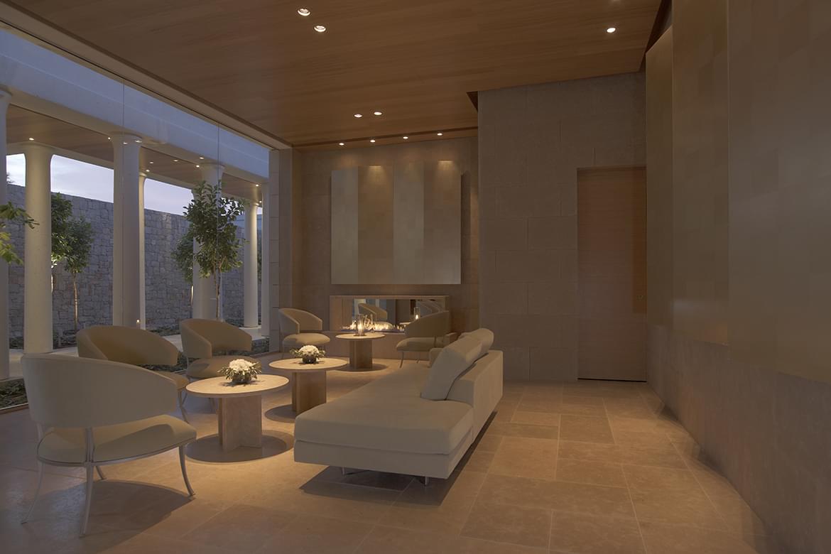 Fronted by an expansive outdoor terrace designed for alfresco dining, the Restaurant is an airy yet cosy venue defined by floor-to-ceiling window-doors on three sides. These maximise sea views and can be opened or closed depending on the weather. The more relaxed Living Room with its central Bar is an ideal venue for a quiet aperitif or light meal – either indoors or out – while the Pool Restaurant offers a casual spot for all-day dining. Located near the main swimming pool, the Fireplace is an outdoor lounge for enjoying a drink at sunset or a nightcap beneath the stars. The Beach Club also includes an informal restaurant.