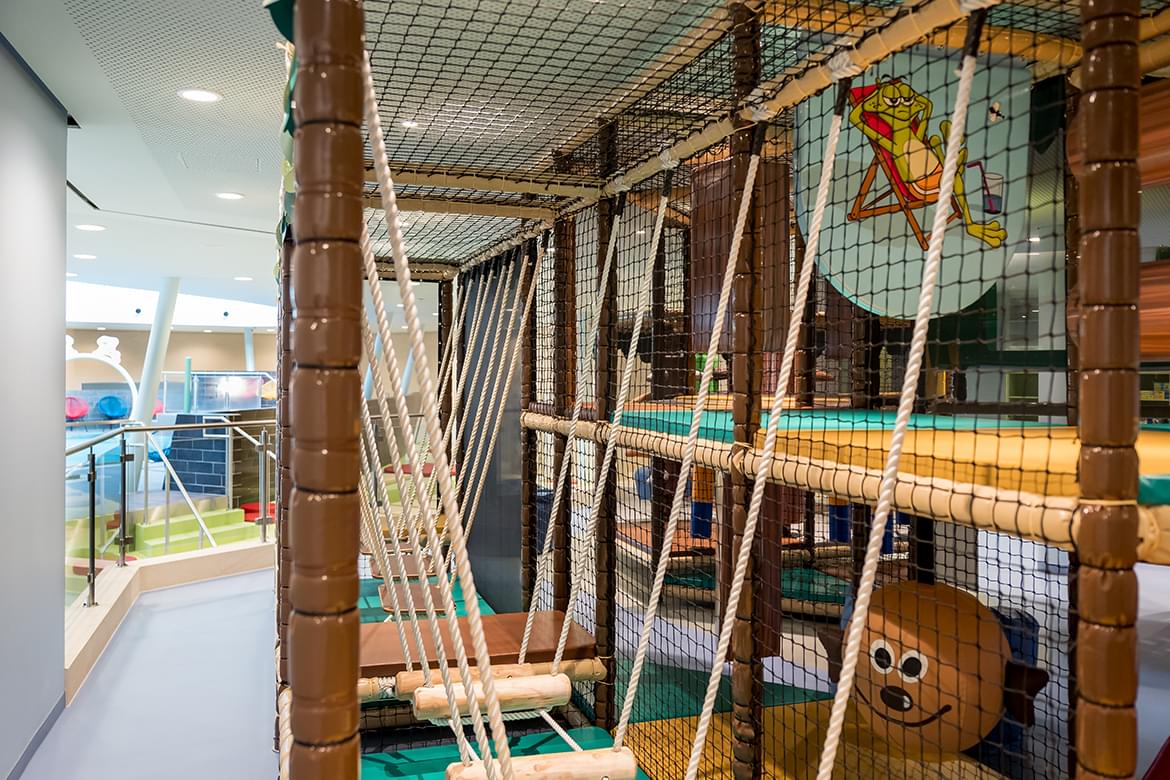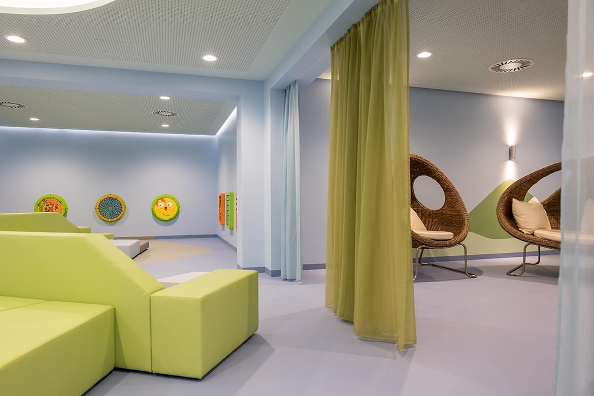 The Talfrische outdoor spa contains three seemingly levitating bowl-shaped pools with a diameter from 12 to 16 metres: one brine pool with underwater music and light effects, one massage pool with a fountain of thermal water and one jacuzzi pool. Additionally, we offer a 25-metres swimming pool for sports, an activity pool with underwater fitness equipment, relaxation areas, a glazed panorama area for hotel guests only, a separate indoor and outdoor children’s area with daily care and free animation programme.