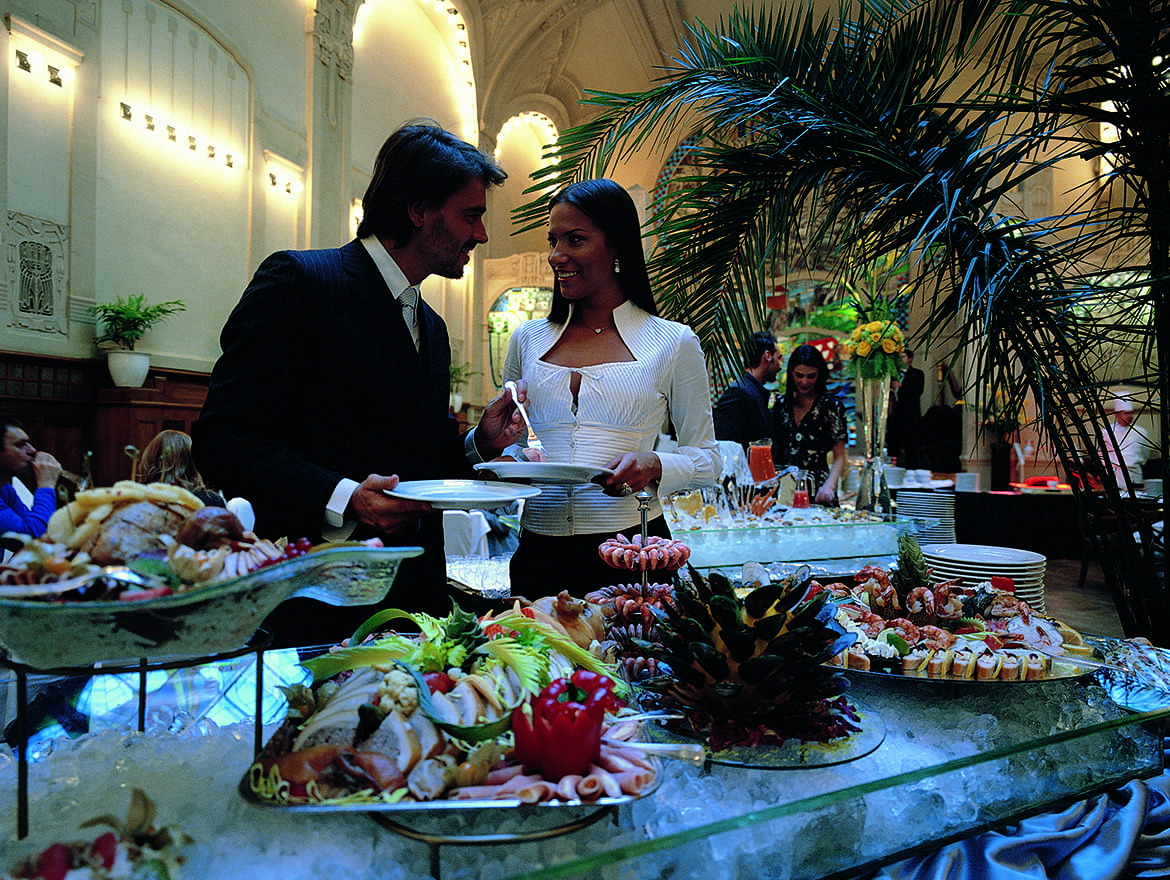 Beluga and Oscietra caviar atop delicate blinis, beef rib eye in Amarena cherry sauce and veal poached in Port are just some of the delicacies on offer.
