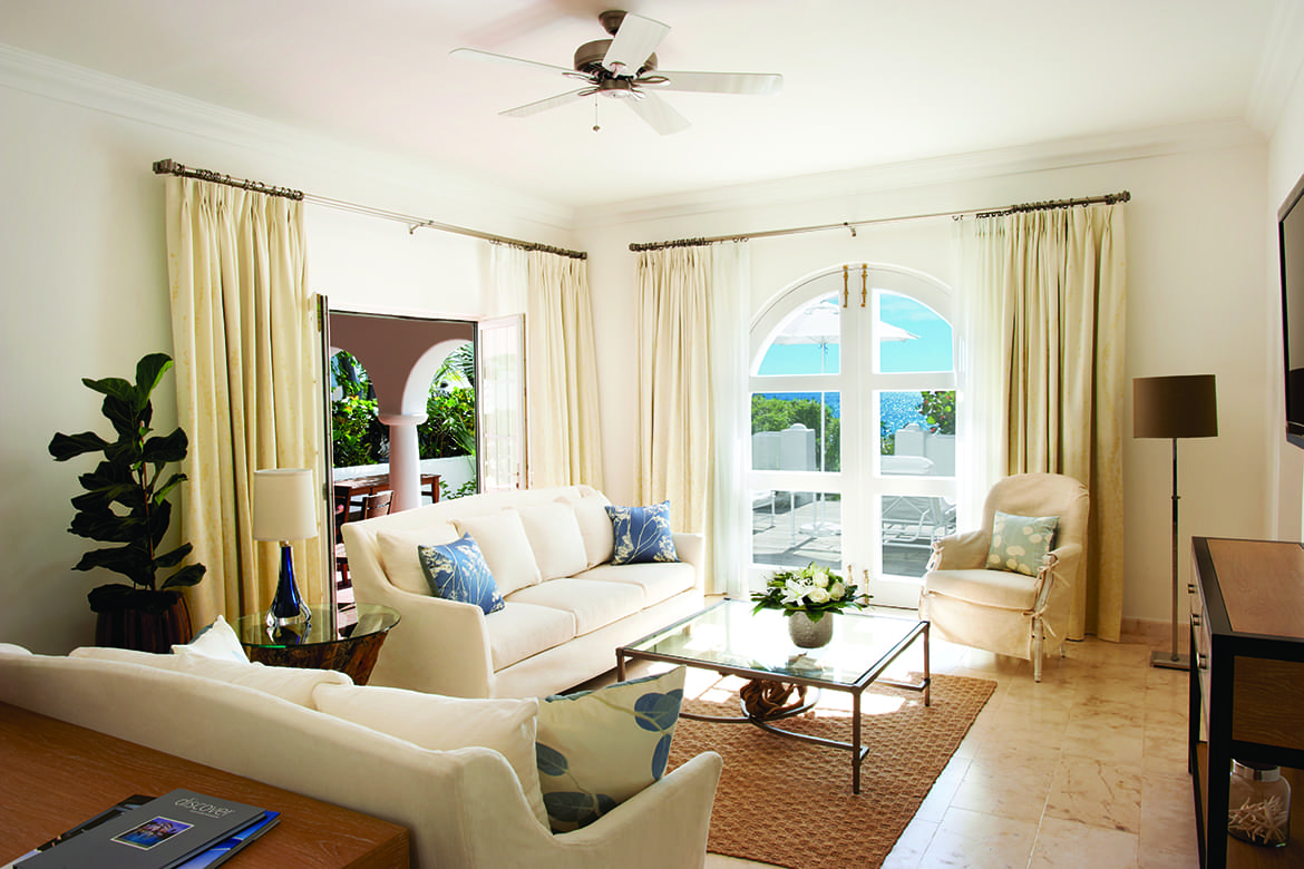 Suites are decorated in a luxurious French style with beautiful tropical accents. Each offers a light-filled bedroom, oversized bathroom with contemporary dual vanities. Guests will find a separate living room and spacious king-sized bed.