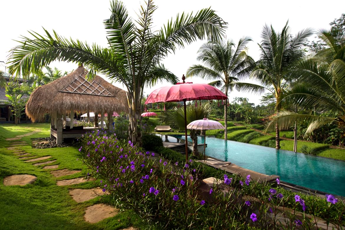 Nestled on the hillside, between sky and earth, in the middle of rice paddies, charming eco lodge Blue Karma Ubud is waiting for you.