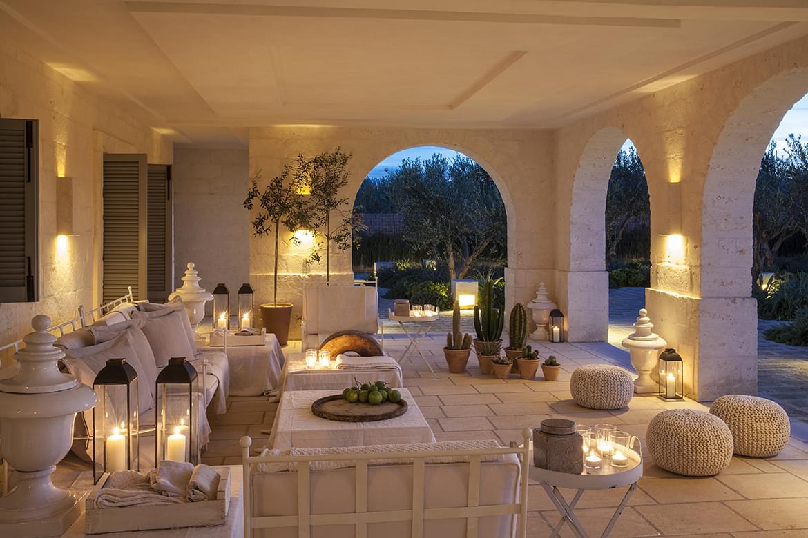 The main building, known as La Corte, hosts many of Borgo Egnazia’s services, including Due Camini restaurant and Vair Spa. The décor combines Mediterranean tradition and modern design.