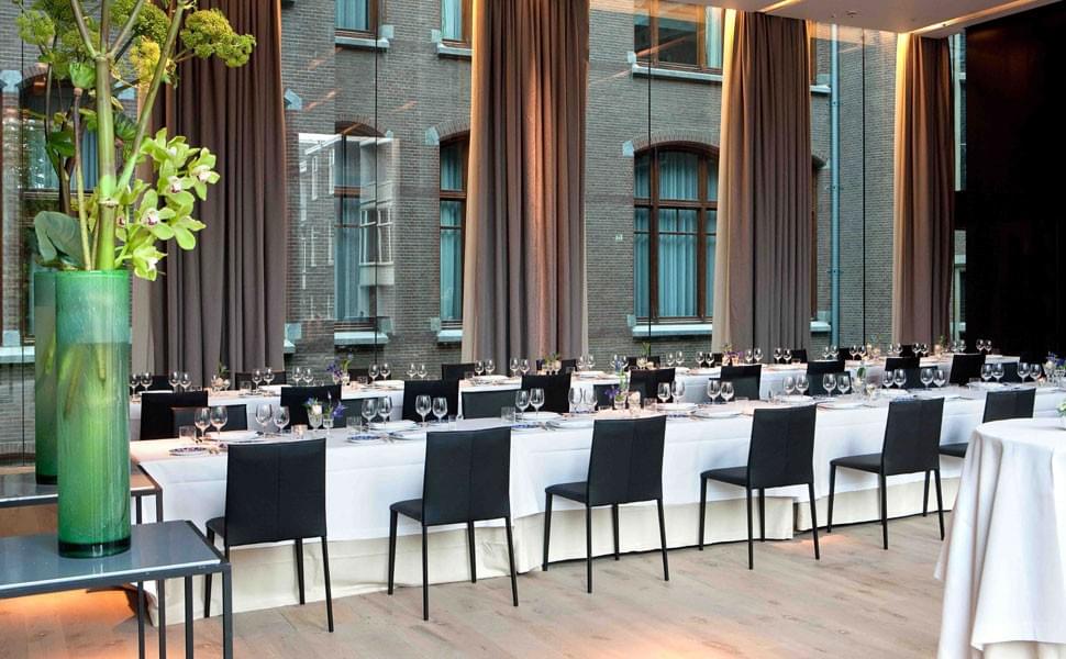 Taiko restaurant sits in the spacious historic part of the hotel overlooking the Paulus Potterstraat and the Stedelijk Museum. Since its opening, it has become one of Amsterdam’s leading restaurants. Taiko, contemporary Asian cuisine by Schilo, redefines the Asian concept with authentic dishes mad of wonderful local, seasonal products, creating something new and exciting. Guests can expect delicious signature sashimi and beef from the Bincho¯ – tan grill. With its stylish and enthusiastic service the restaurant has a truly cosmopolitan feel, popular amongst international visitors and locals alike. With its chic décor and shimmering ambiance, Tunes Bar is an elegant yet casual haven (including a separate smoking lounge) in which to enjoy classic drinks, exclusive cocktails, sushi and Asian tapas. At night the deep banquettes, tactile fabrics and subtle lighting create a chic intimate space, whilst during the day, the huge windows fill the room with light showcasing designer Piero Lissoni’s signature transparent bar and folded steel staircase. Enjoy the in-house DJ on Thursdays, Fridays and Saturdays.