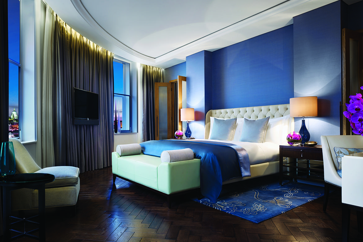 The London Suite will provide unparalleled comfort to guests seeking a residential retreat while staying in the city. The room has been designed with privacy in mind, and for guests wishing to entertain there are doorways to each functional space and the option of two further adjoining bedrooms. Art is a key focus and featured artwork and sculptures from the Cubism era grace the suite. This fantastic dual aspect suite with contemporary amenities and state-of-the-art facilities is more of a modern life dream bedroom overlooking Whitehall.