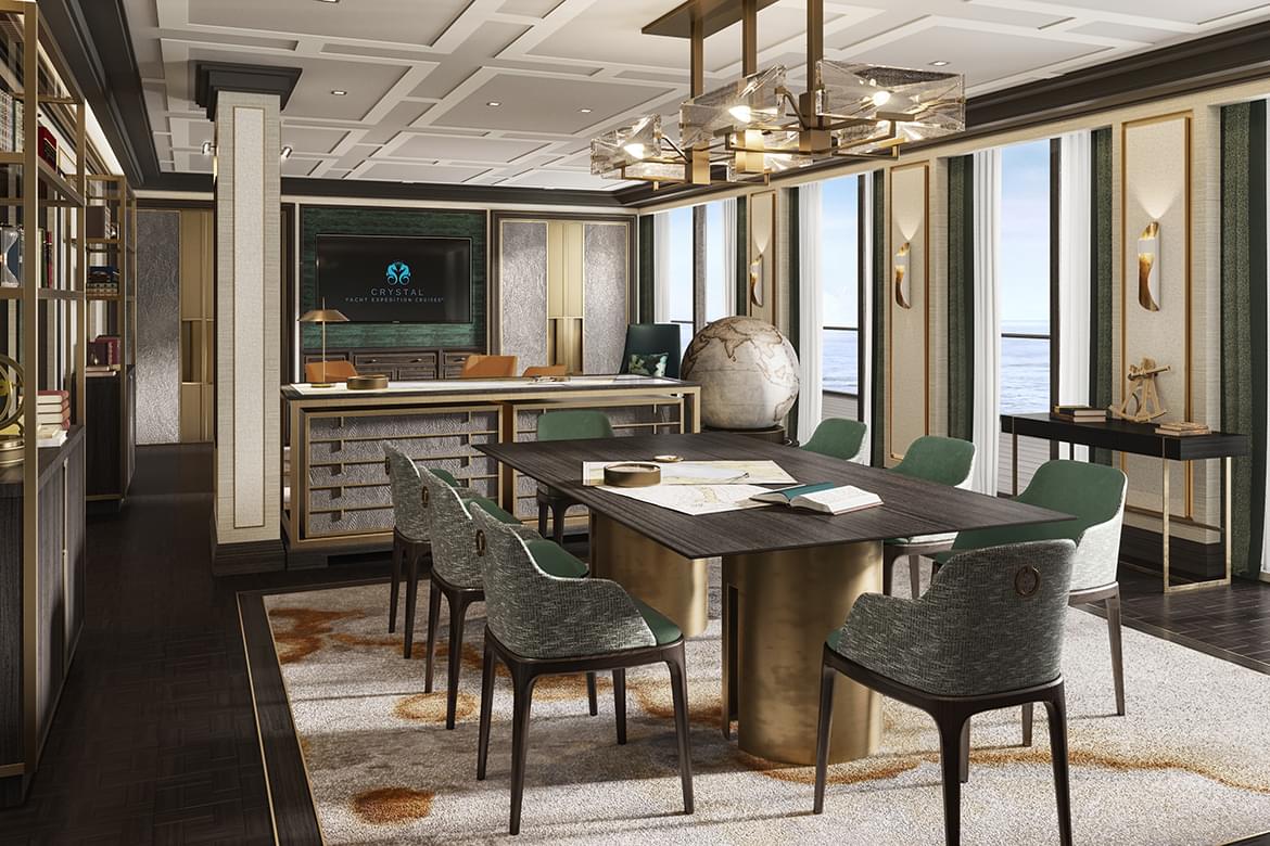 Crystal Endeavor’s design is rooted in Crystal’s signature luxury and comfort, while also inspiring extreme adventure. The purpose-built polar code-compliant (PC6) luxury expedition yacht provides breathtaking pursuits by air, sea and land while offering a complete range of “exploration toys”. Zodiacs, a helicopter and private submersible allow for all manner of exploration, while spacious mudrooms accommodate gear and preparation for the day’s discoveries.