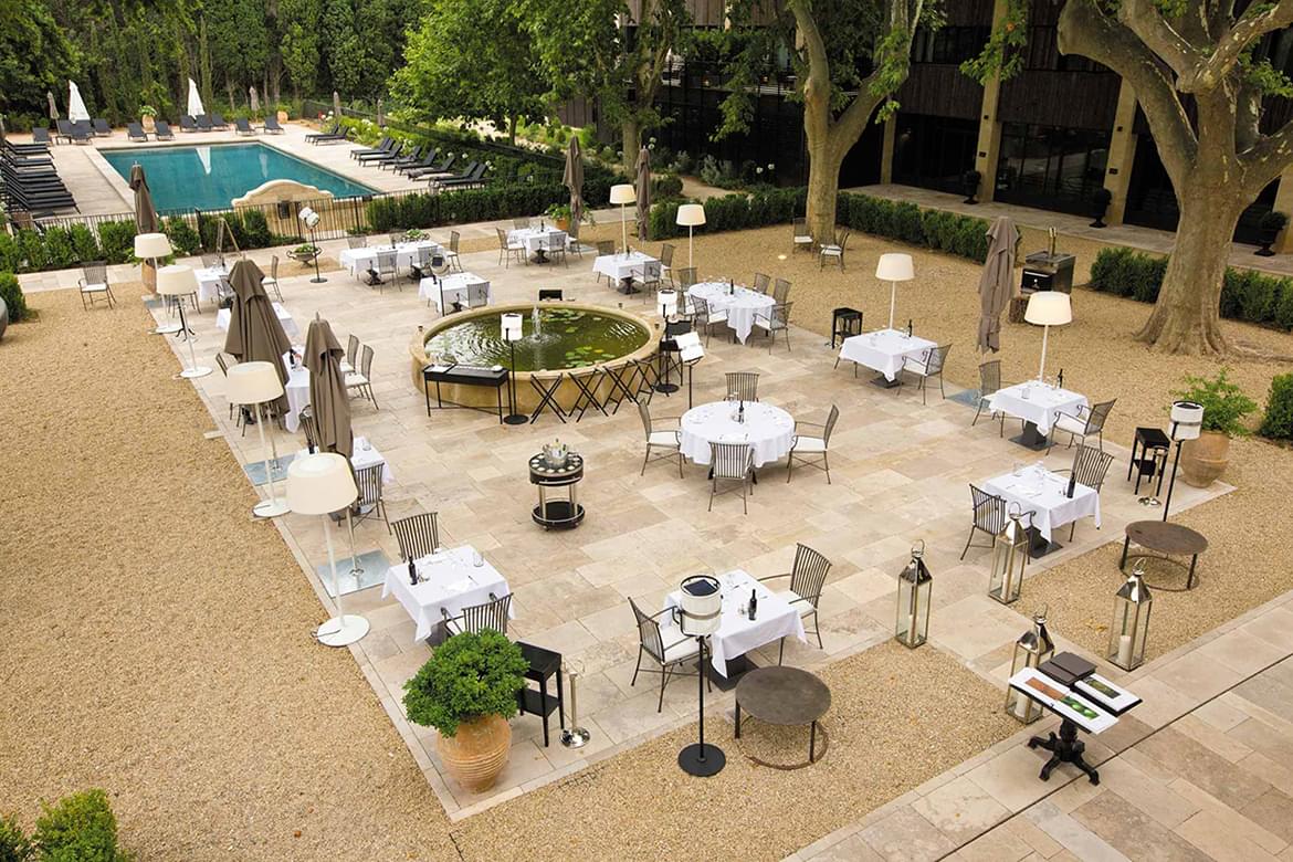 In the gastronomic restaurant “La Table”, Chef serves the Alpilles and Provence, expressing their seasonal treasures in his cuisine. The orchards and the vegetable gardens, locally-raised lamb, traditional artichokes a la barigoule, slowly roasted tomatoes, apricots paired with rosemary honey, sun-gorged strawberries from Carpentras.