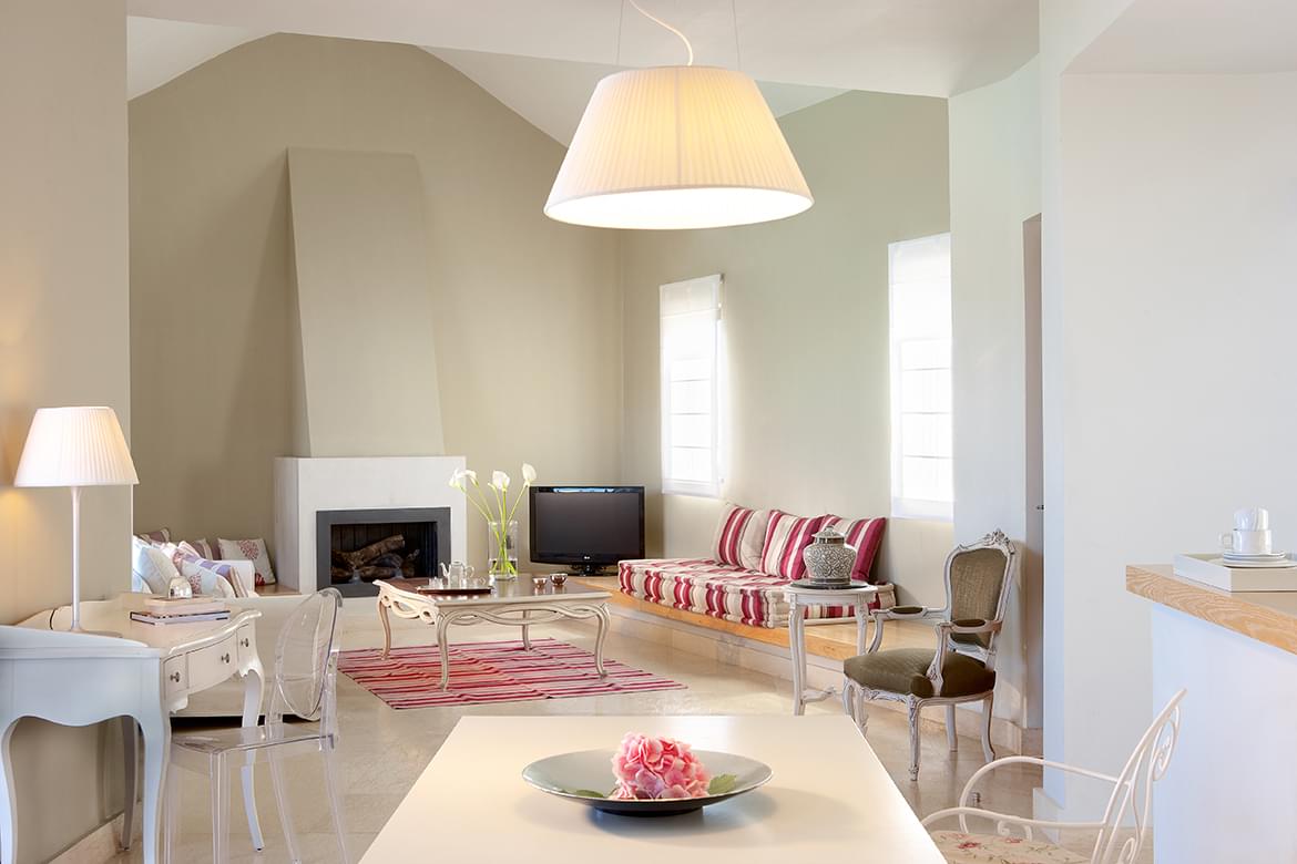 The Luxury family suites are only offered in one type: Luxury Family Two Bedroom Suite Sea View with outdoor Jacuzzi. For the more affluent families, this unique spacious luxury family suite is consisted from two separate bedrooms both with en-suite facilities and a separate large living room. Both bedrooms are elegantly decorated and reflect the luxurious design of Domes of Elounda and offer en suite bathrooms.