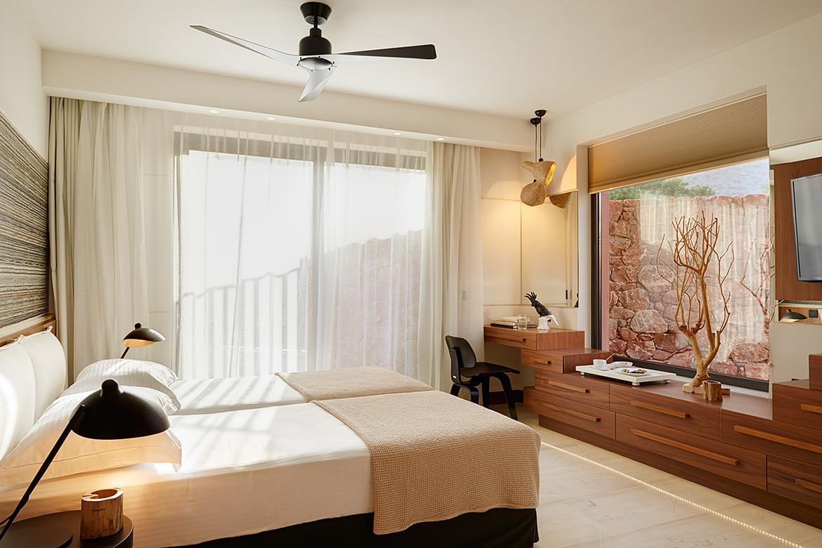Each suite and villa find its roots in architecture from Greece, Carpath and Syria, borrowing features such as domes and pyramidal ceilings that cool rooms capturing sea breezes and create organically shaped living spaces at a human scale.