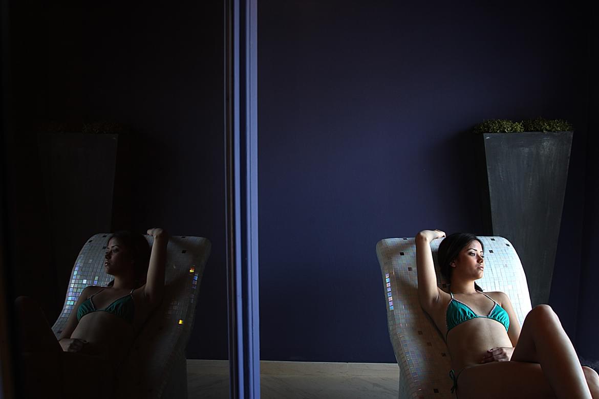 Enchanting views of the Mediterranean Sea and landscape through the floor-to-ceiling windows were designed to bring together luxury, nature and the self. A black mosaic seawater pool surrounded by large tinted glass panels welcomes you to the spa experience. White Filifili lighting fixtures by Martinelli float above while objects and furniture by Moroso, Serralunga, and Bonaldo epitomize the new standards of luxury.
