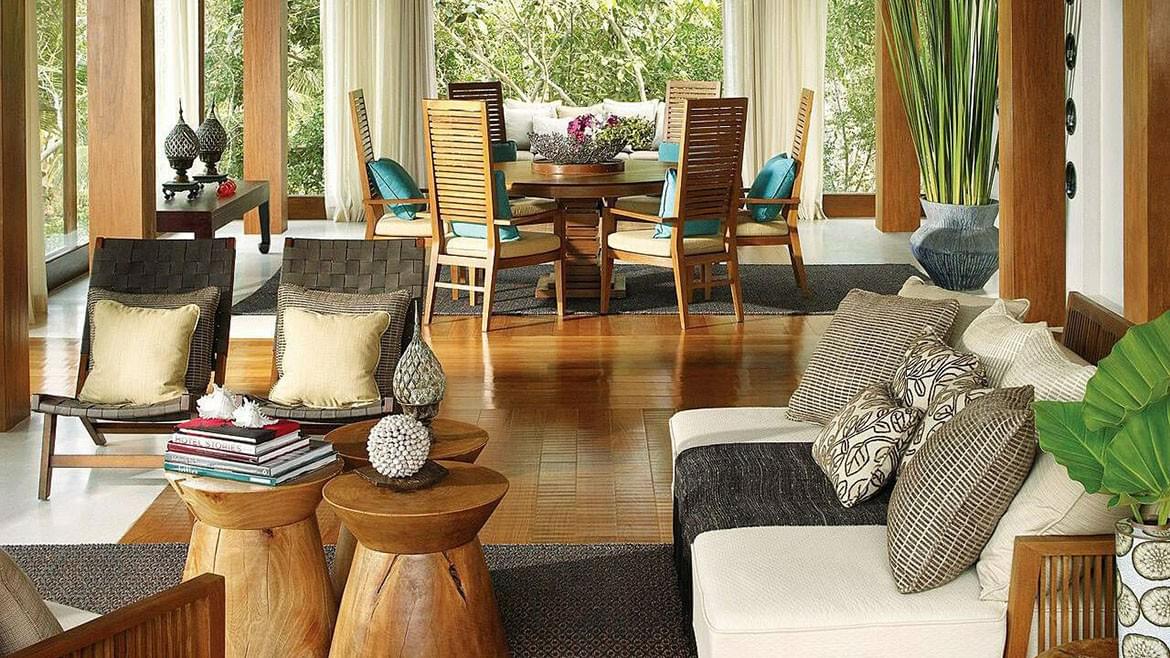 Luxurious Three-Bedroom Residence Villas in Four Seasons Resort Koh Samui offer panoramic views of the Gulf of Siam and the island of Pha Ngan from their hillside location. Outdoor space ranges from 102 square metres to 275 square metres (1,098 square feet to 2,959 square feet) and includes a large deck and two private infinity-edge pools – ideal for friends and family to share in the magic of Samui.