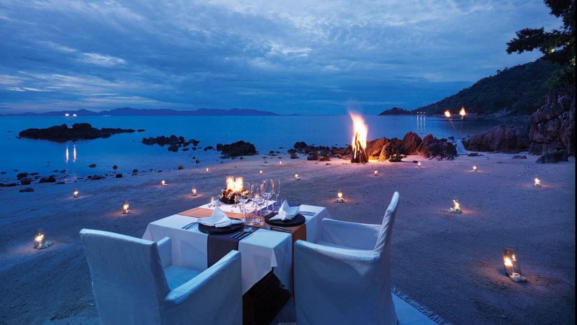 At Four Seasons Resort Koh Samui, experience a gourmet paradise, where abundant varieties of fish and exotic herbs are coupled with Thailand’s sophisticated culinary traditions. Executive Chef Alex Gares will prepare a menu just for two, including Thai, Western or modern Thai dishes paired with wines from around the world. As a personal butler serves dinner, candles in the sand, tiki torches in the ocean and the sounds of traditional Thai music performed on the kim will add even more romance to the evening. At the end of your special meal, traditional khom loy floating lanterns will be released into the heavens for good fortune.