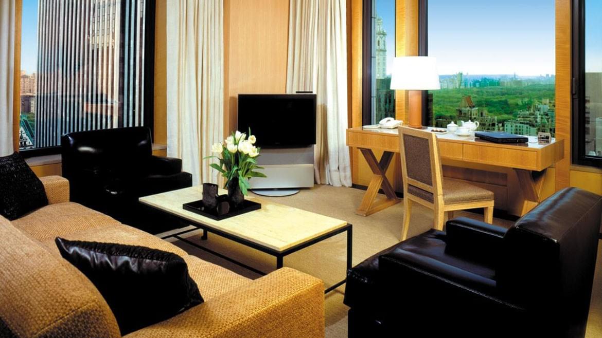 Living and working areas in the Terrace Park-View Executive Suite are separated from the sleeping quarters by solid wood doors, while the furnished terrace provides magnificent views of Central Park. Grand Suites