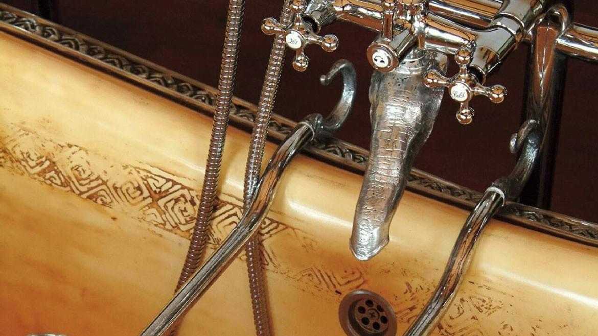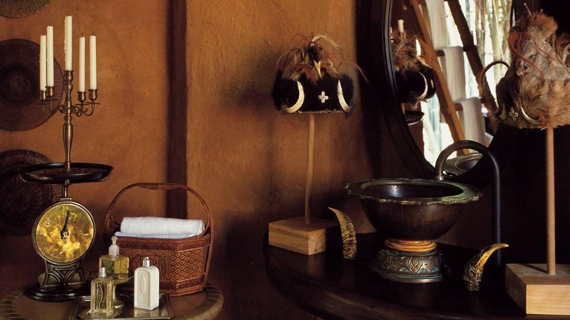 A quaint walkway leads to each tent, where elephant-tusk-styled door handles open into a living area measuring 54 square metres (581 square feet). Each tent in Four Seasons Tented Camp Golden Triangle shares a common layout, but is uniquely decorated and furnished in an individual colour scheme with coordinated furnishings.