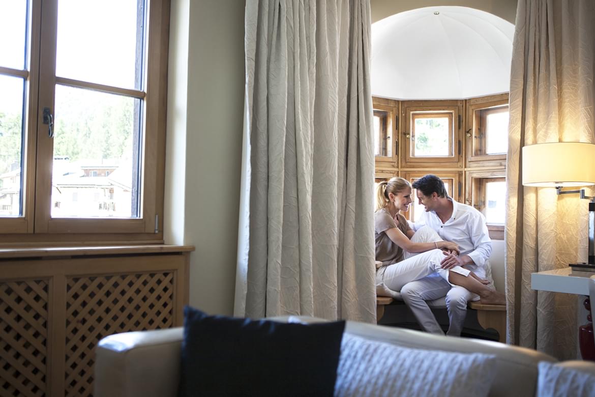 Alpine chic, charm and comfort. The 78 rooms and suites earn star after star with every glance. The historic structural essence determines the individual floor plans. Style and design are real feasts for the eyes. High-quality structural materials radiate charm and warmth. Most of the rooms and suites have terraces or balconies with a view of the breath- taking Upper Engadin mountain landscape. All rooms and suites are equipped with modern technology.