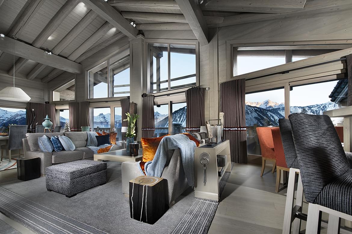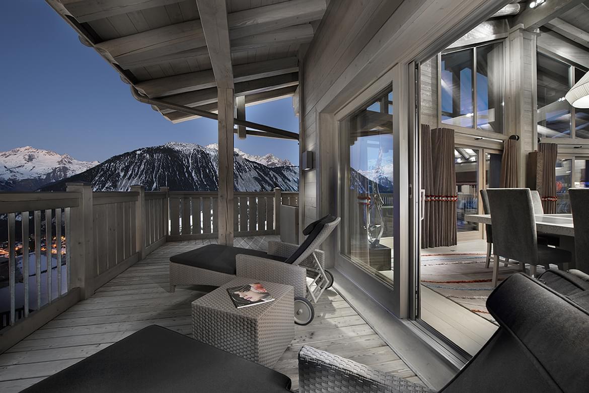 Suite-Chalet Muztagh room of exceptional quality, 4 different levels, give pride of place to wide open living areas and offer views of the surrounding massifs, the valley and the neighbouring forest. The chalet can welcome 10 people in 5 bedrooms, each with en-suite bathroom. Room equipped with swimming pool with home cinema, a hammam or hot tub, a large lounge with fireplace, a tv room, a dining room, a fitted kitchen, a ski room and a lift, as well as large balconies. A butler, housekeepers and a chef are at the exclusive disposal of chalet occupants throughout their stay.