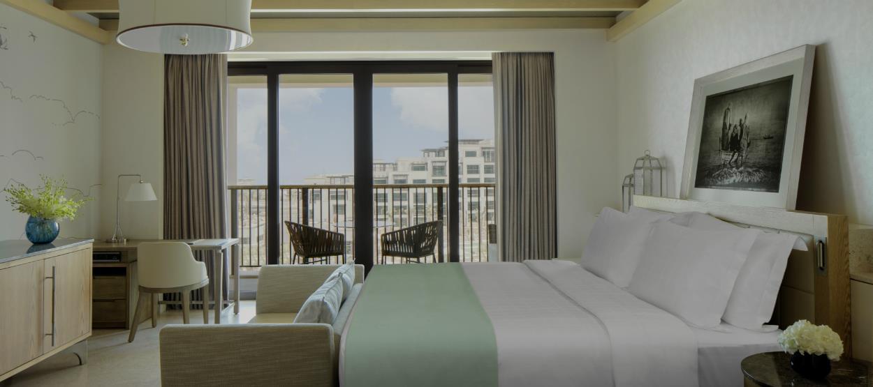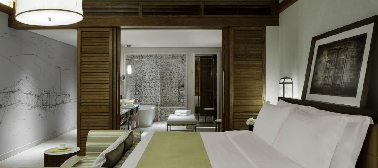 Resort Deluxe room offers a soothing ambiance in a relaxed and contemporary setting. The guest rooms are spacious and designed to adapt to your needs; open plan and accented with Arabian touches delivering a strong sense of place. Rooms overlooking the resort’s gardens and swimming pools.