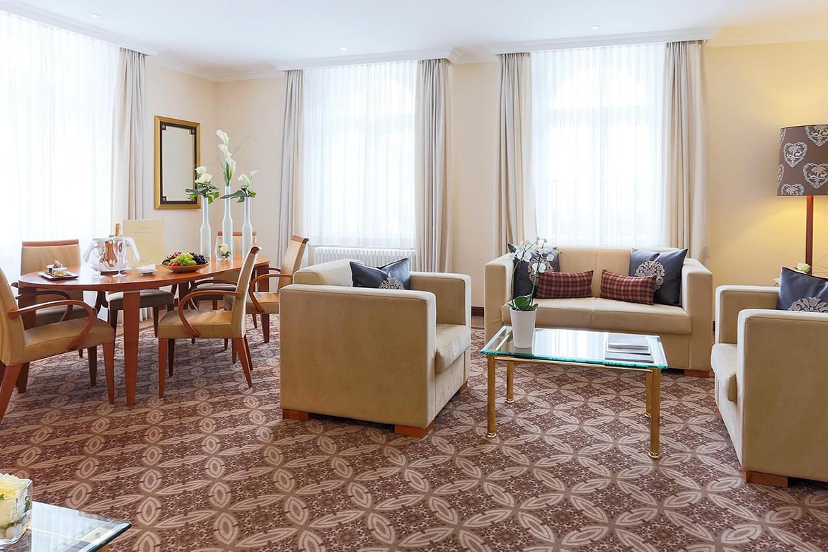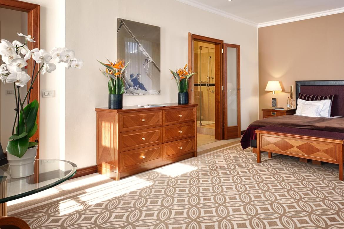 Grand deluxe rooms are perfect stay for families at Kempinski Grand Hotel des Bains. Grand deluxe room are the largest of all the Kempinski Grand Hotel des Baines’s standard rooms. With extra beds, entertaining room for children and spacious lounge makes a quality time in the luxury surroundings.