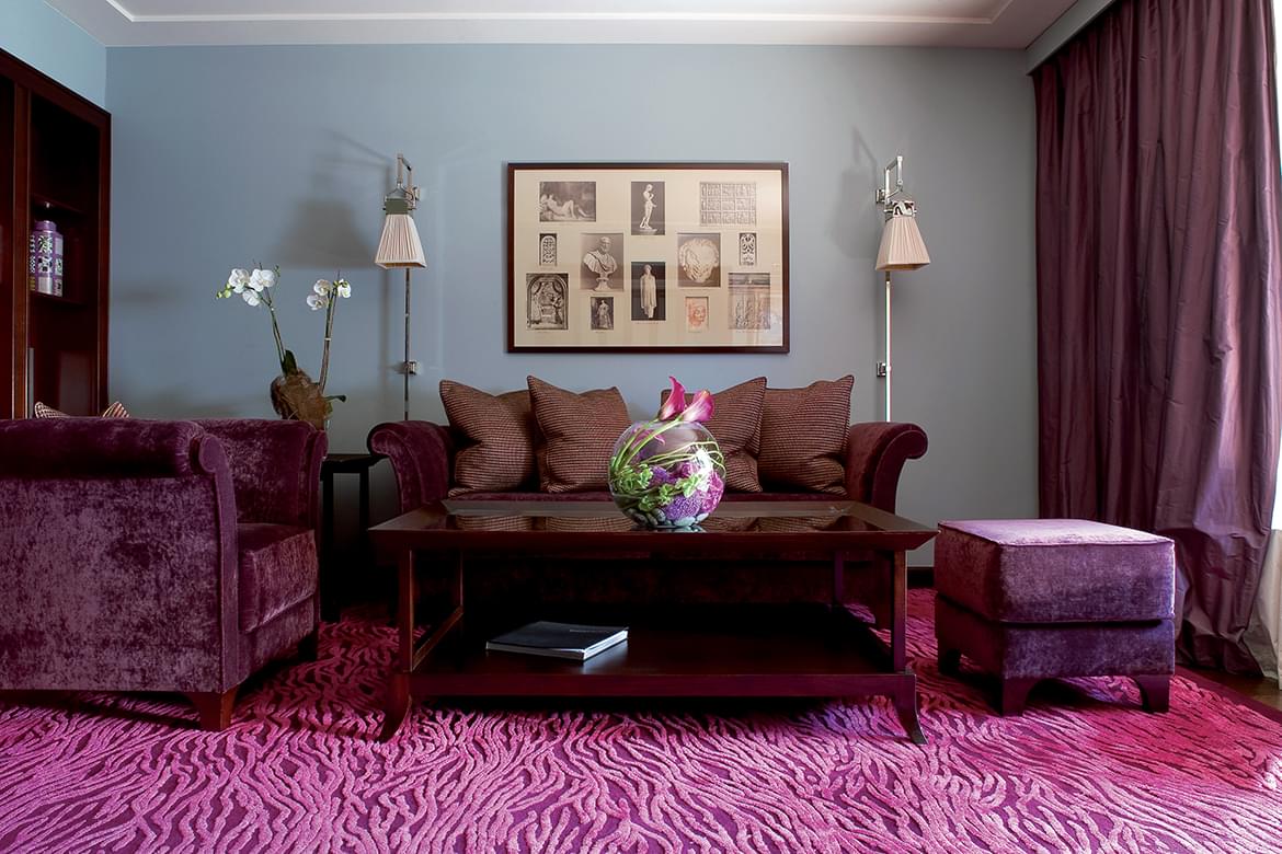 Warm colours, luxurious fabrics, paintings and generous space of presidential suite offer 124sq.m dining room and lounge area ideal for business, friends or family celebrations.