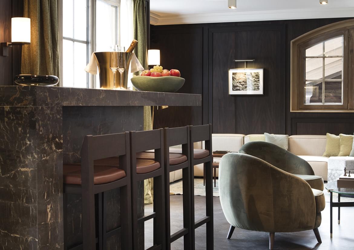 Situated above a former Olympic ski jump on a field of snowy white, the panoramic views from L’Apogée Courchevel are unsurpassed; while inside, the hotel is a cocoon of luxuriant warmth. The designers envisaged a deeply comfortable home for guests to return to after a day on the brilliant light of the ski slopes; somewhere authentic, with an easy sophistication and welcoming.