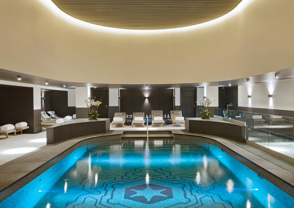 The fine design of the five Spa cabins is an important part of the soothing experience; one is a duo cabin, specially created for the Bania ritual. Guests prepare for treatments loosening limbs in the blue mosaic pool and Jacuzzi, and clearing minds in the steam room and salt sauna.