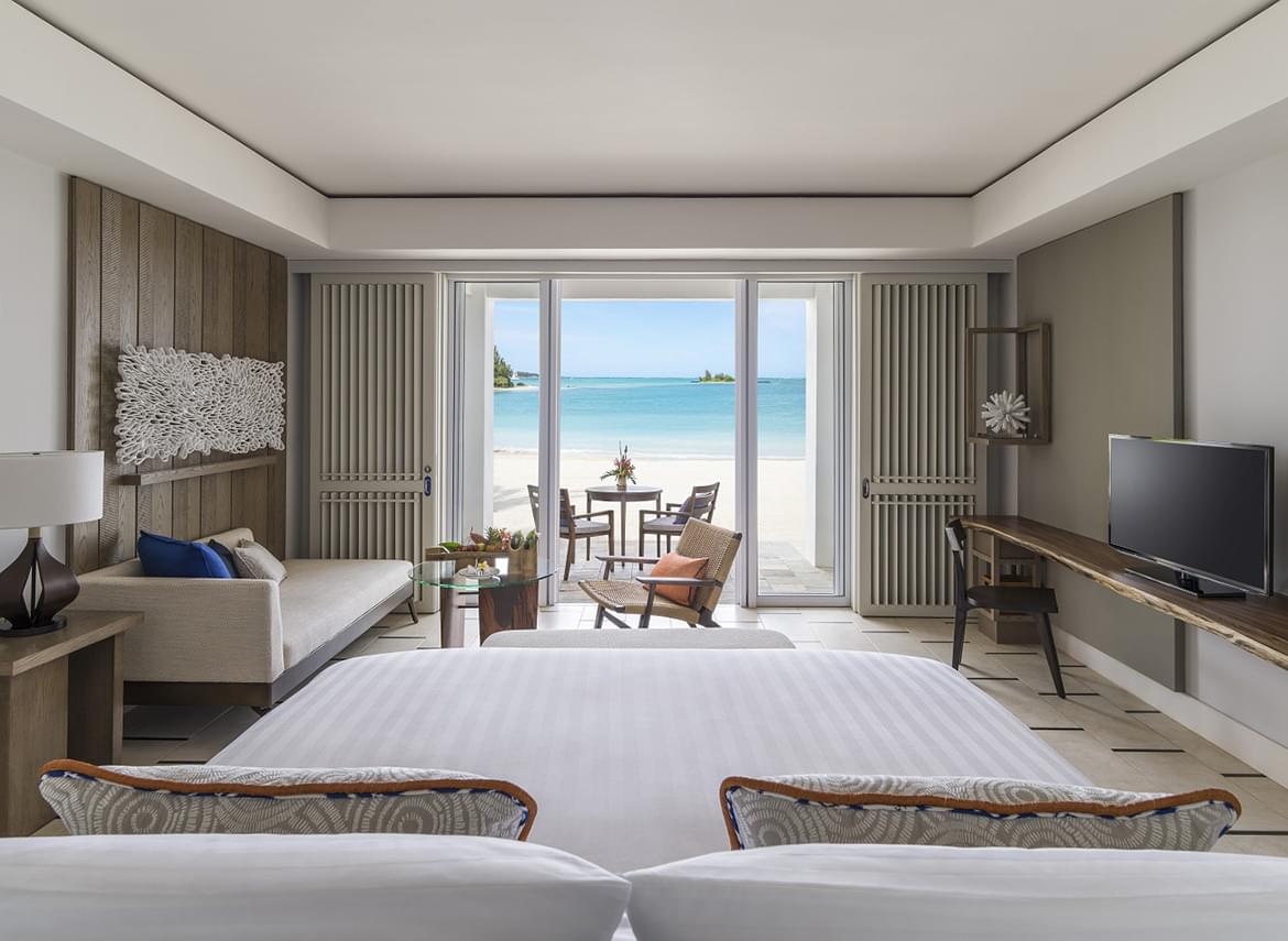 Le Touessrok resort Mauritius’ suites and rooms are situated on the mainland in the Hibiscus and Coral Wings of the resort, with further suites in the Frangipani Wing. All of them have ocean views. All Le Touessrok guests have 24-hour personalised butler service.