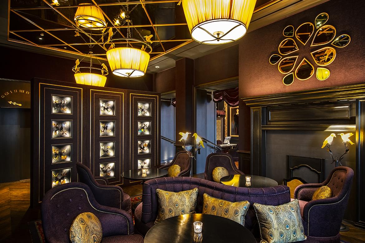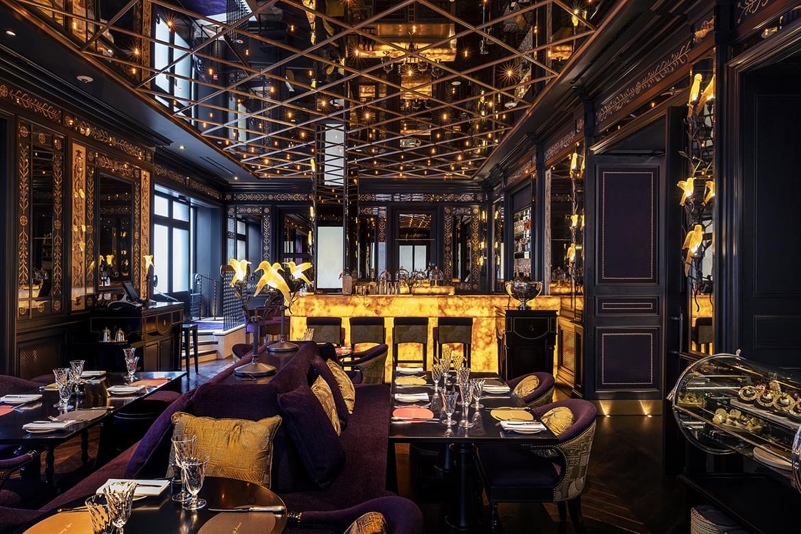 Located on the ground floor, it is the bustling heart of the hotel offering the charm and sophistication of a Parisian café. Its illuminated onyx bar and decor is inspired by the world’s oldest café in Venice, with walls and ceilings lined with mirrors, gilded panels and stunning original art. A food lover’s lair, it is the go-to place for delectable breakfasts, bistro-style lunches, intimate evening dinners or simply a late-night dessert and a soothing glass of wine.