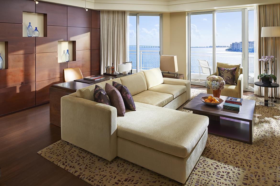 Located on the sixth floor, these spacious rooms exude luxury, comfort and effortless style. Enjoying far-reaching views over Biscayne Bay and the Miami skyline, rooms are opulently appointed and exquisitely decorated with contemporary artwork and furnishings including a working desk and comfortable armchairs.