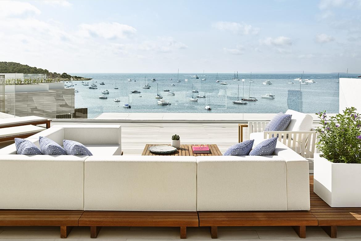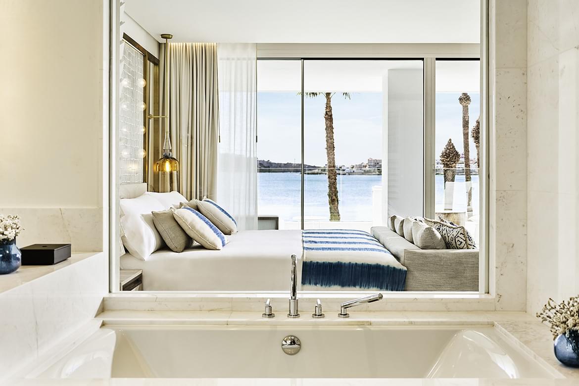 Nobu Hotel Ibiza Bay is ideally positioned on the shores of Talamanca Bay, eight kilometres from the airport and two kilometres north of Ibiza Town.