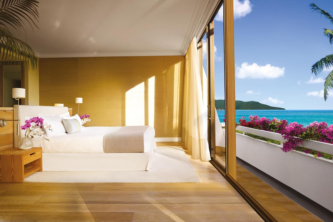 Hayman Premium Ocean View Rooms offer stunning uninterrupted views of Hayman Beach and the Coral Sea. All rooms feature a private balcony, spacious en-suite bathroom with separate shower, bath, double vanity and open-plan dressing room.