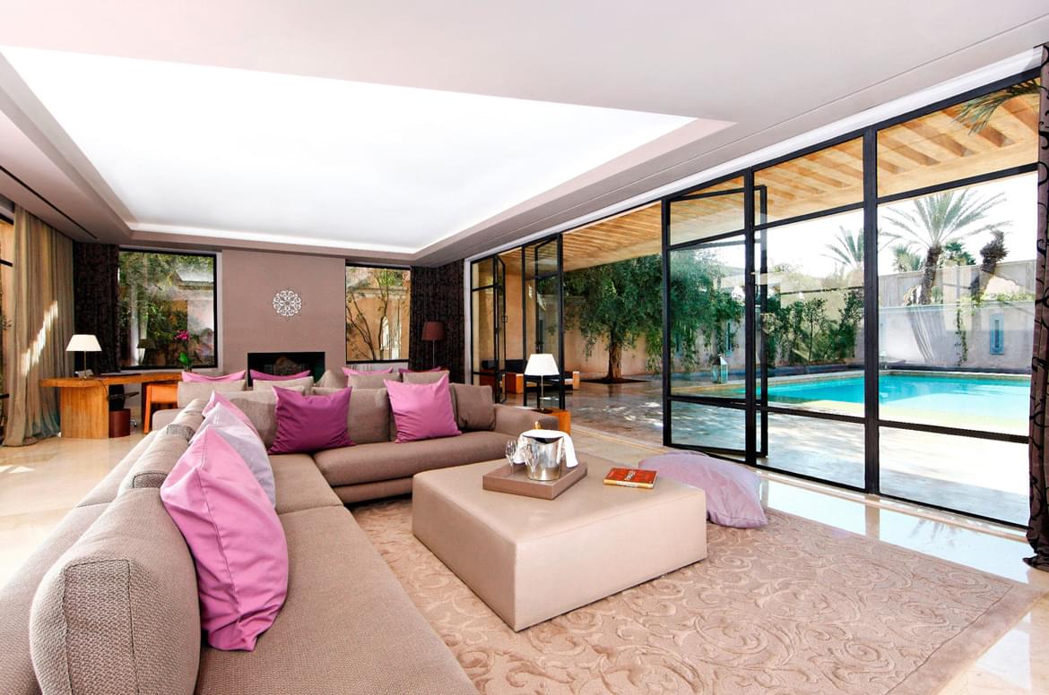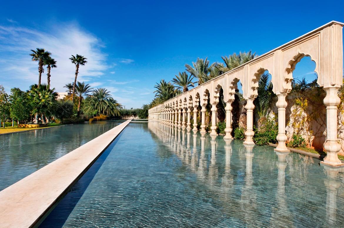 Nestled between Morocco’s Atlas Mountains and Djebilet Hills, Palais Namaskar graces a picturesque setting in Marrakech’s revered Palmeraie region.