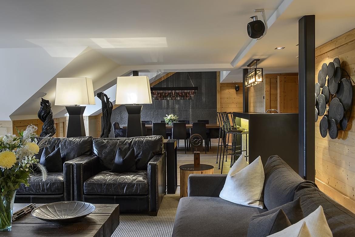 The largest penthouse suite in the Swiss Alps, My Gstaad Chalet, offers a mountain retreat like no other. It houses four warm and elegant bedrooms each with their own en-suite black granite bathroom and views of stunning alpine scenery.