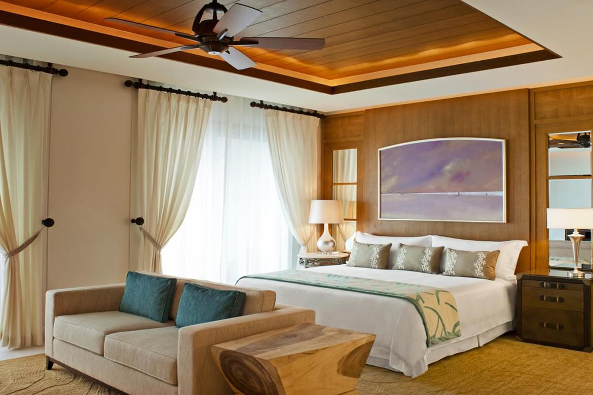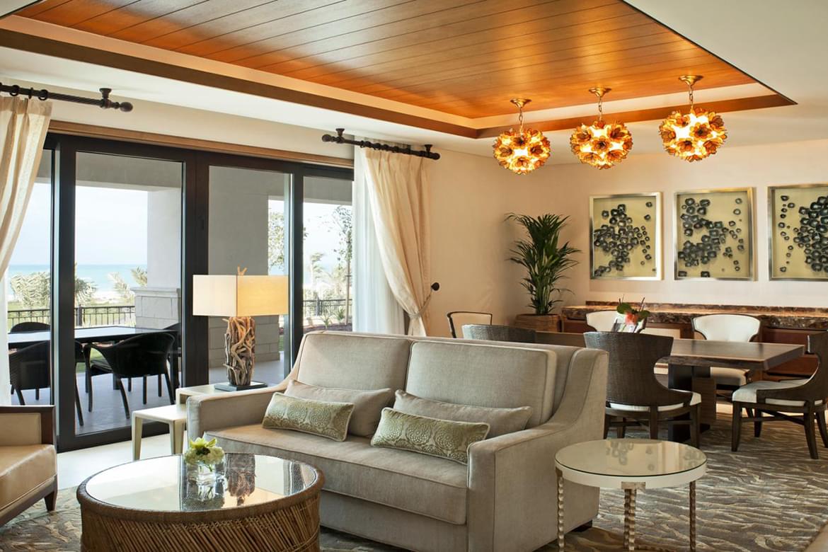With the St. Regis Suite, experience Mediterranean living beautifully located on a natural island. Featuring 85sqm of luxurious space and located on a pristine white beach, the suite includes an intimate living area.