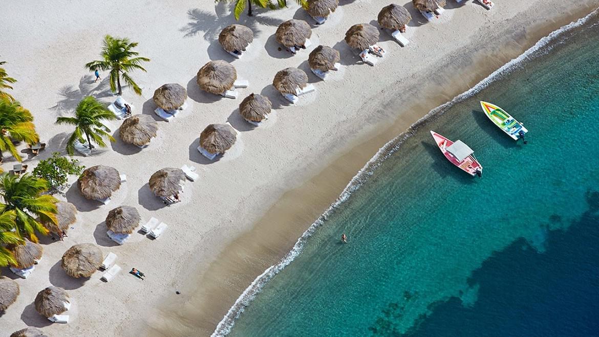 On the west coast of St. Lucia, lies a land of unparalleled beauty and tranquillity. Embraced by a lush tropical rainforest, Sugar Beach, A Viceroy Resort provides a magical destination for discerning travellers. Offering space enough for families and honeymooners alike, Sugar Beach, St Lucia is the premier choice among Soufriere hotels for discerning travellers seeking seclusion and tranquillity amid unsurpassed natural beauty. St Lucia is only 27 miles long and 14 miles wide, with a shape that is said to resemble either a mango or an avocado (depending on your taste). The Atlantic Ocean kisses its eastern shore, while the beaches of the west coast owe their beauty to the calm Caribbean Sea. Sugar Beach, A Viceroy Resort is set on the scenic Caribbean west coast of St Lucia
