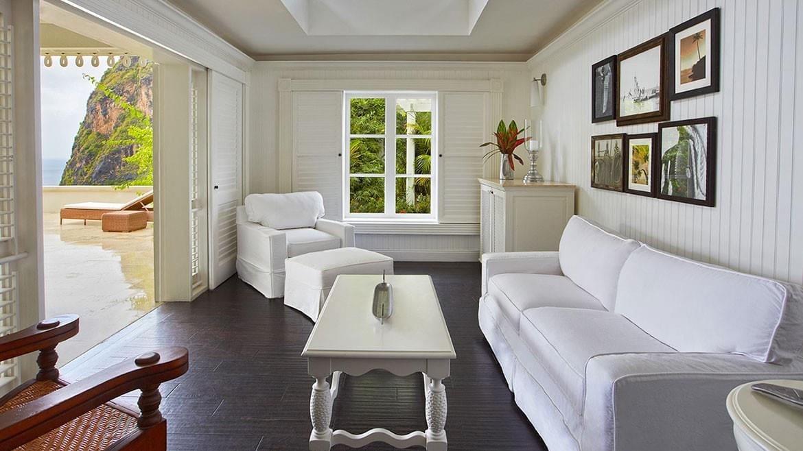 Each of the St Lucia resort’s Luxury Sugar Mill Rooms, Luxury Villas, Luxury Beach front Bungalows, and Residences affords spectacular views of the Pitons or the Caribbean Sea.