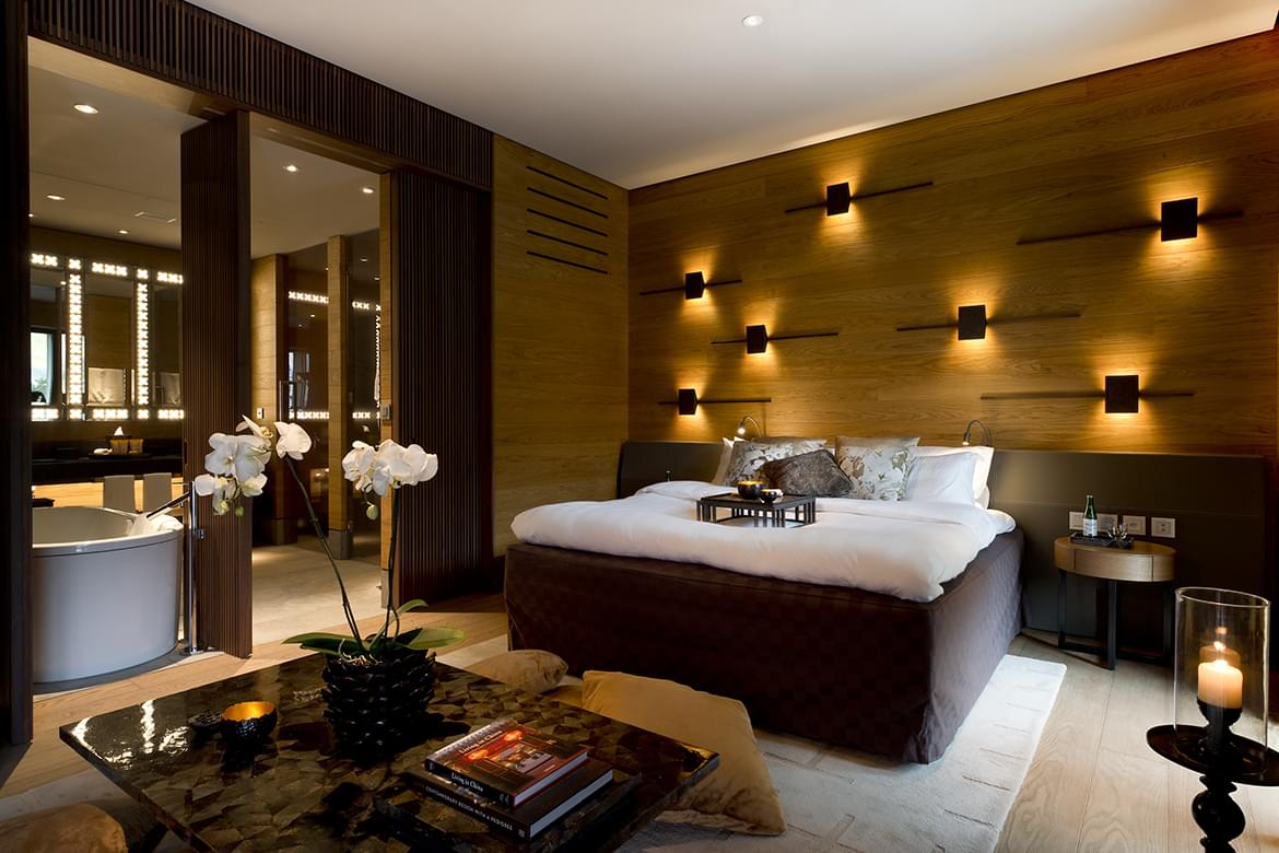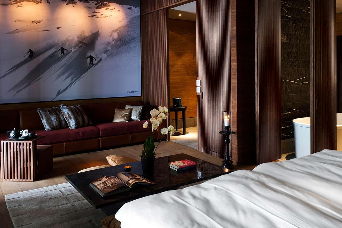 Alpine chic meets Asia sleek in these 123 guest accommodations endowed with captivating view of the Swiss Alps, Andermatt Village. Sultry dark wood floors stylishly contrast the indulgently soft leather chairs and cosy sofas.