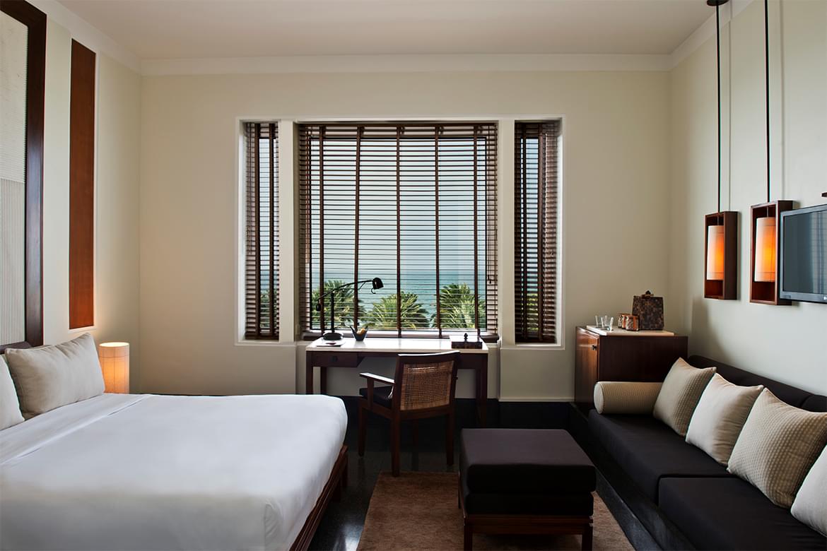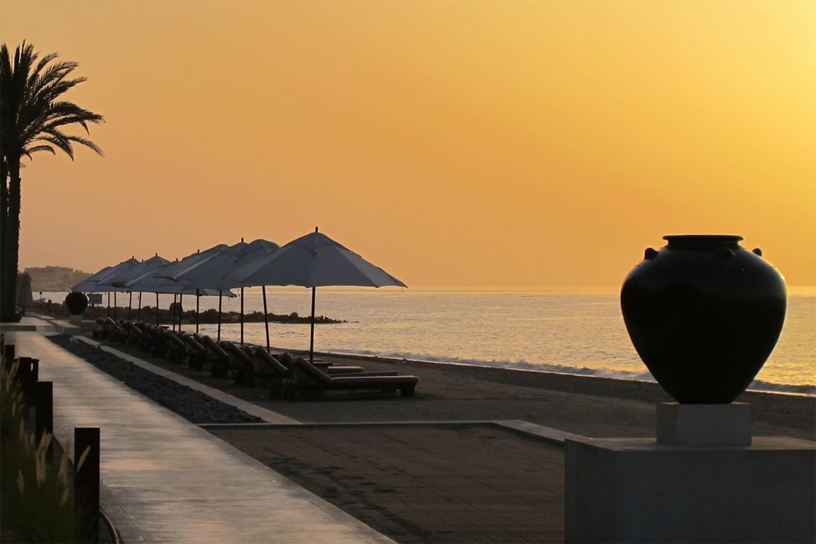 Sparkling waters, vibrant gardens and dramatic mountains as seen through the grand windows in all 158 tasteful, well-appointed guestrooms and suites heighten the calming effect of the natural and timeless environment at The Chedi Muscat.