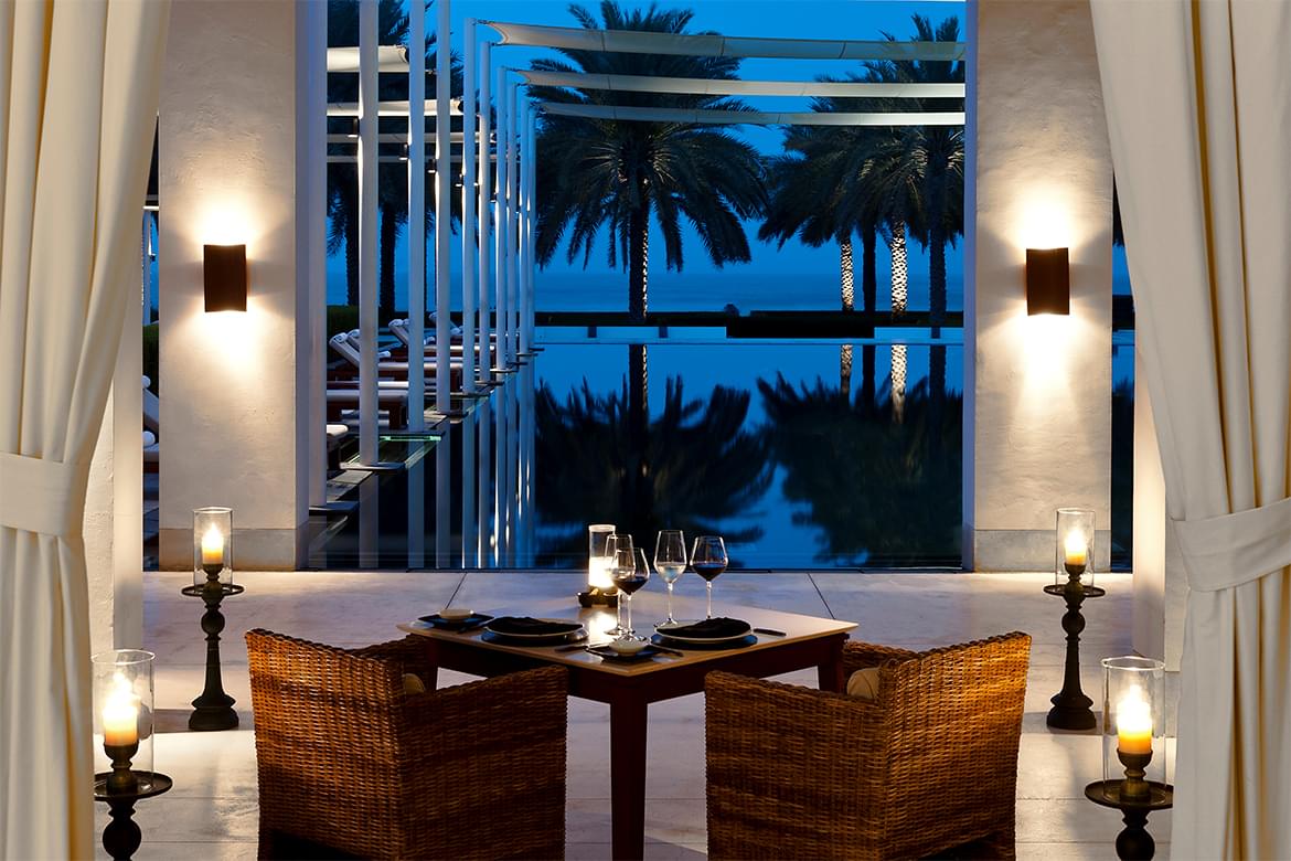 By definition, events held at The Chedi Muscat are special. Brides dreaming of the perfect backdrop to their dream day will find their heart’s contentment among The Nam Hai and The Legian private dining rooms, or the more intimate, minimalist Nizwa room. Celebrate any festive occasion at The Chedi Pool Cabana, or by the sea at The Beach Restaurant. Ensure equally successful outcomes for your professional events in the refined, Omani inspired meeting spaces, The Salalah Room and The Nizwa Room which can be configured according to your meeting needs.
