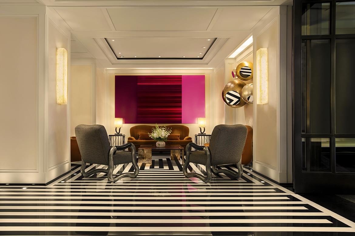 Drawing on the expertise of an extraordinary group of talents — foremost among them the designer Jacques Grange and the hotel General Manager Olivier Lordonnois — The Mark Hotel is now a beacon of high French style and modern American technology and comfort. The delights of The Mark are both bold and discreet. The graphics lobby is colourful and convivial, studded with unique objects d’art that surprise and intrigue.